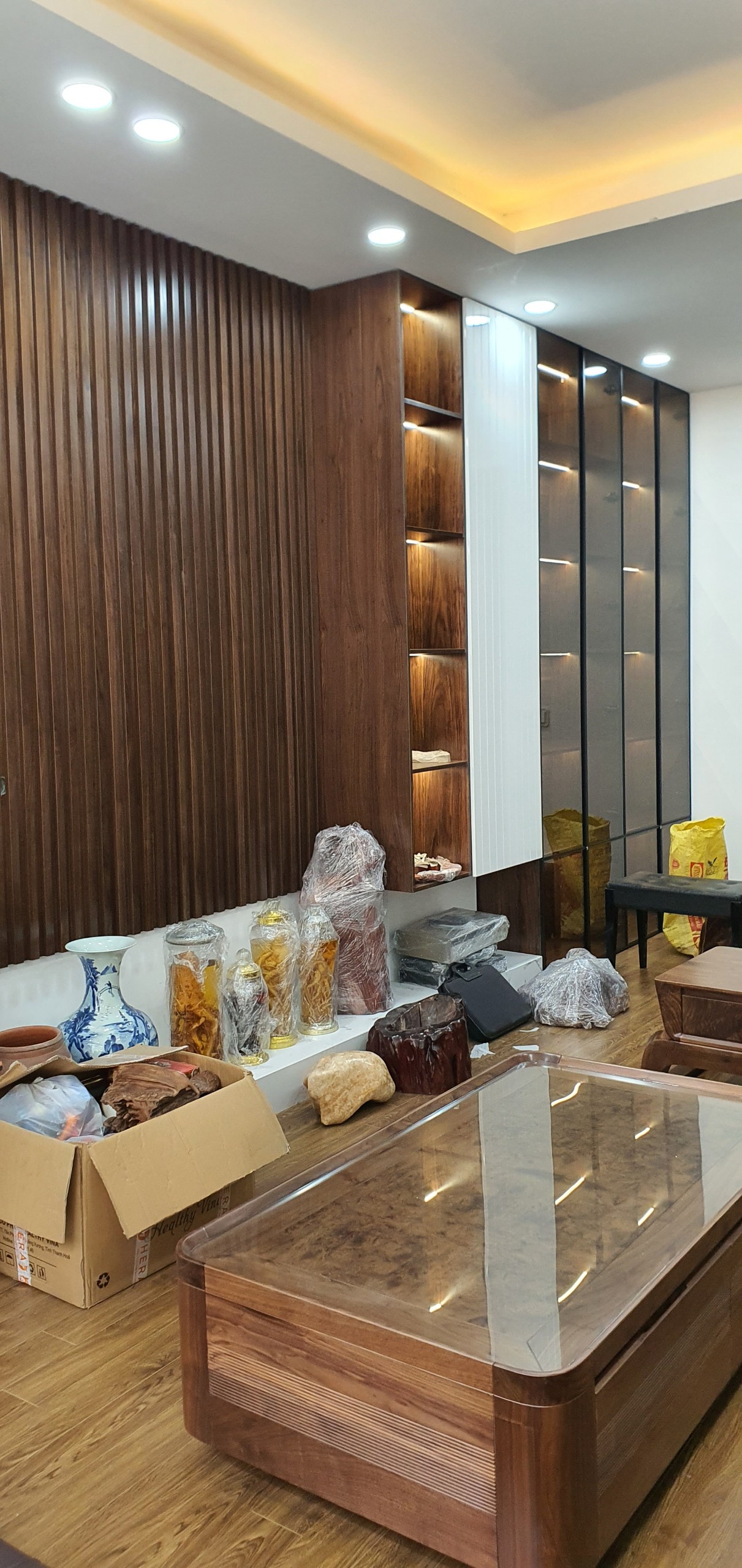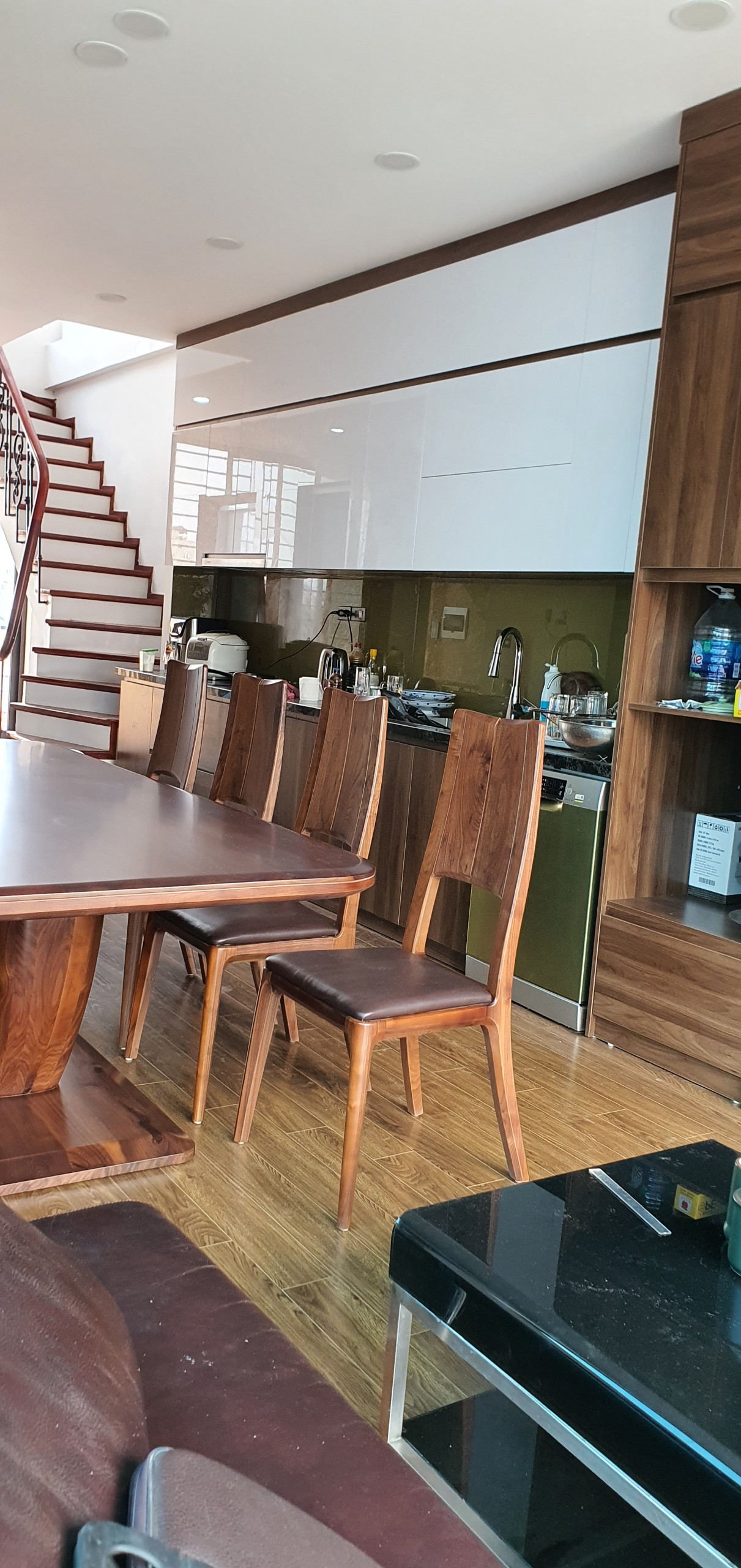 Ngôi nhà tại 61 Hoàng Cầu của anh Bình là sự kết hợp hoàn hảo giữa chất liệu gỗ óc chó truyền thống và các vật liệu hiện đại như đá xuyên sáng, kính cường lực. Mỗi chi tiết đều được chăm chút tỉ mỉ, từ đường nét gỗ đến ánh sáng, tạo nên một không gian sống đẳng cấp, vừa ấm cúng vừa đầy đủ tiện nghi.