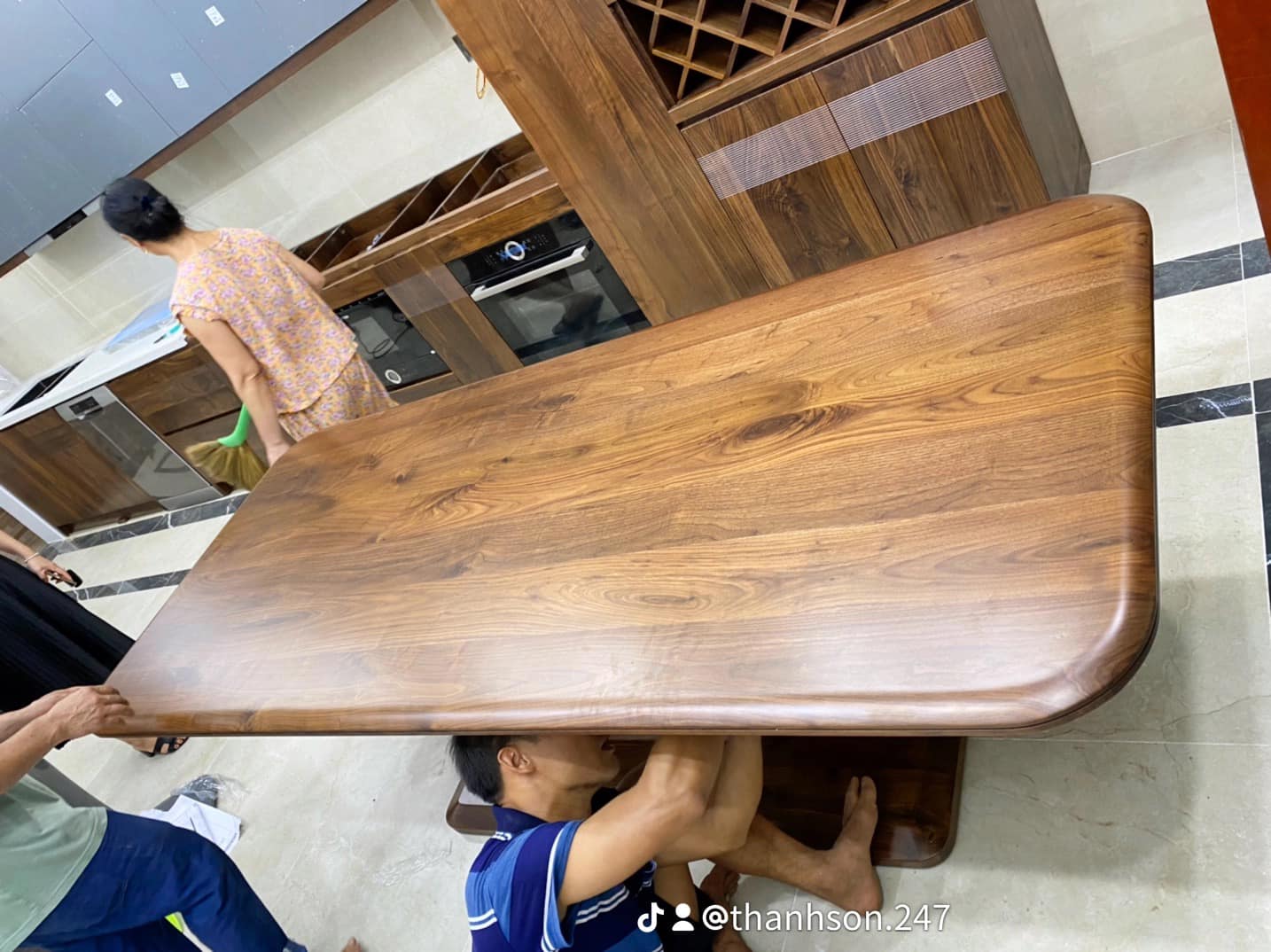 Bước vào không gian bếp nhà chị Hương tại Bắc Giang, bạn sẽ ngay lập tức bị thu hút bởi vẻ đẹp ấm cúng và sang trọng của bộ sưu tập nội thất gỗ óc chó. Chất liệu gỗ quý với những đường vân tự nhiên mềm mại, sắc nâu trầm ấm đã biến căn bếp trở thành một không gian đẳng cấp, vừa truyền thống vừa hiện đại.